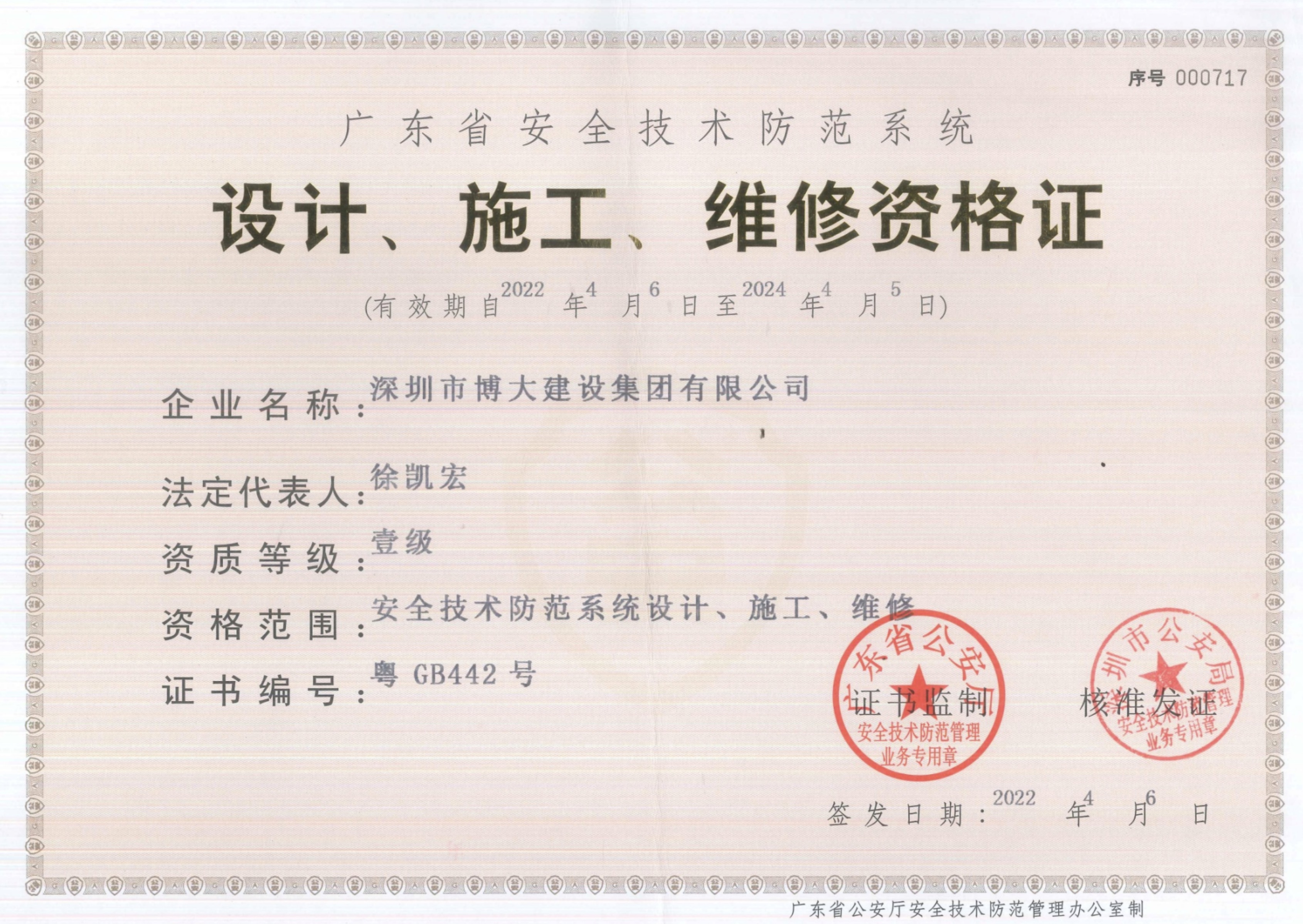 安全技術(shù)防范系統(tǒng)設(shè)計、施工、維修資格證