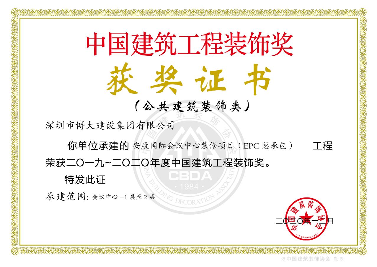 博大建設集團承建的北京大興國際機場裝飾工程、安康國際會議中心裝飾工程、安康瑞斯麗酒店裝飾工程、四川玉屏山康養度假酒店裝飾工程、安巒公館幕墻工程等經典工程以卓越品質再獲7項中國建筑工程裝飾獎!