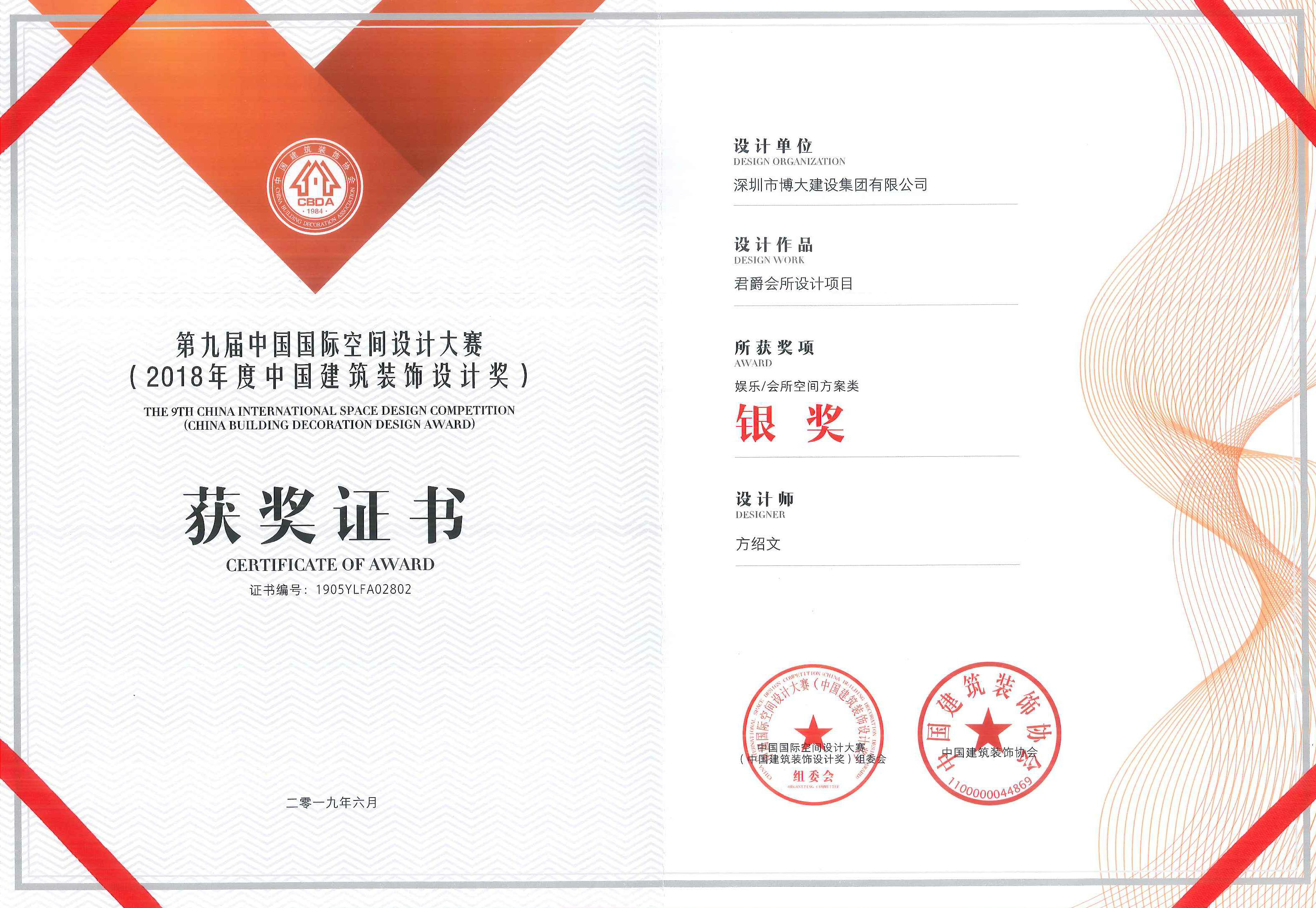 近幾年博大榮獲國家、省級、市級多項設(shè)計大獎,本著立足國內(nèi)市場、面向國際市場的原則,不斷吸收國內(nèi)外優(yōu)秀設(shè)計理念、與眾多行業(yè)設(shè)計大師建立起良好的合作關(guān)系,緊跟新技術(shù)、新設(shè)備、新材料、新工藝在建筑裝飾工程中的普遍應(yīng)用,以最敏銳的思維、最頑強的毅力、最精心的設(shè)計、最優(yōu)質(zhì)的服務(wù)和精益求精的專業(yè)情神、持續(xù)改進的管理原則,不負用戶與業(yè)界的高度贊譽與期望,再創(chuàng)新的設(shè)計輝煌!