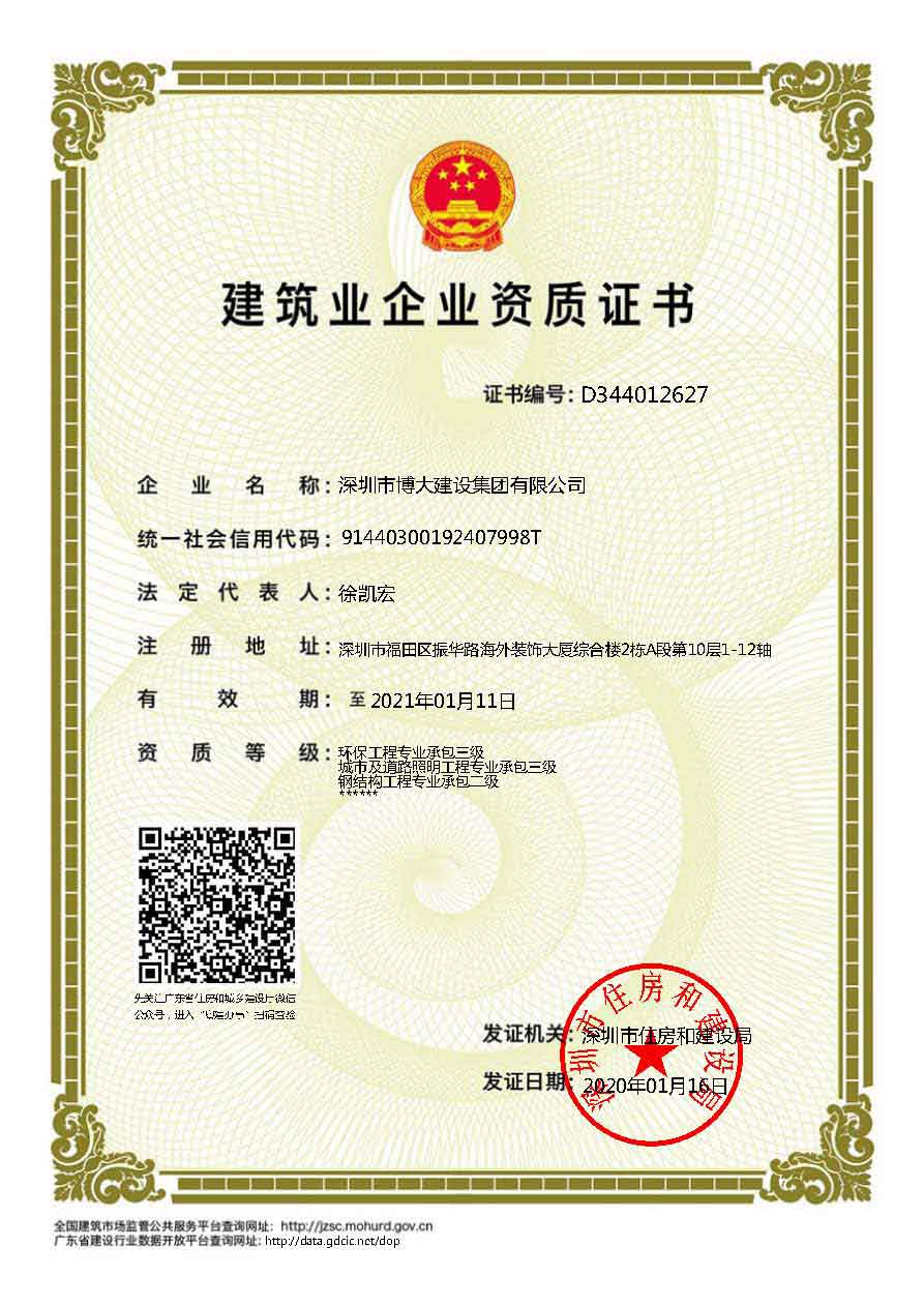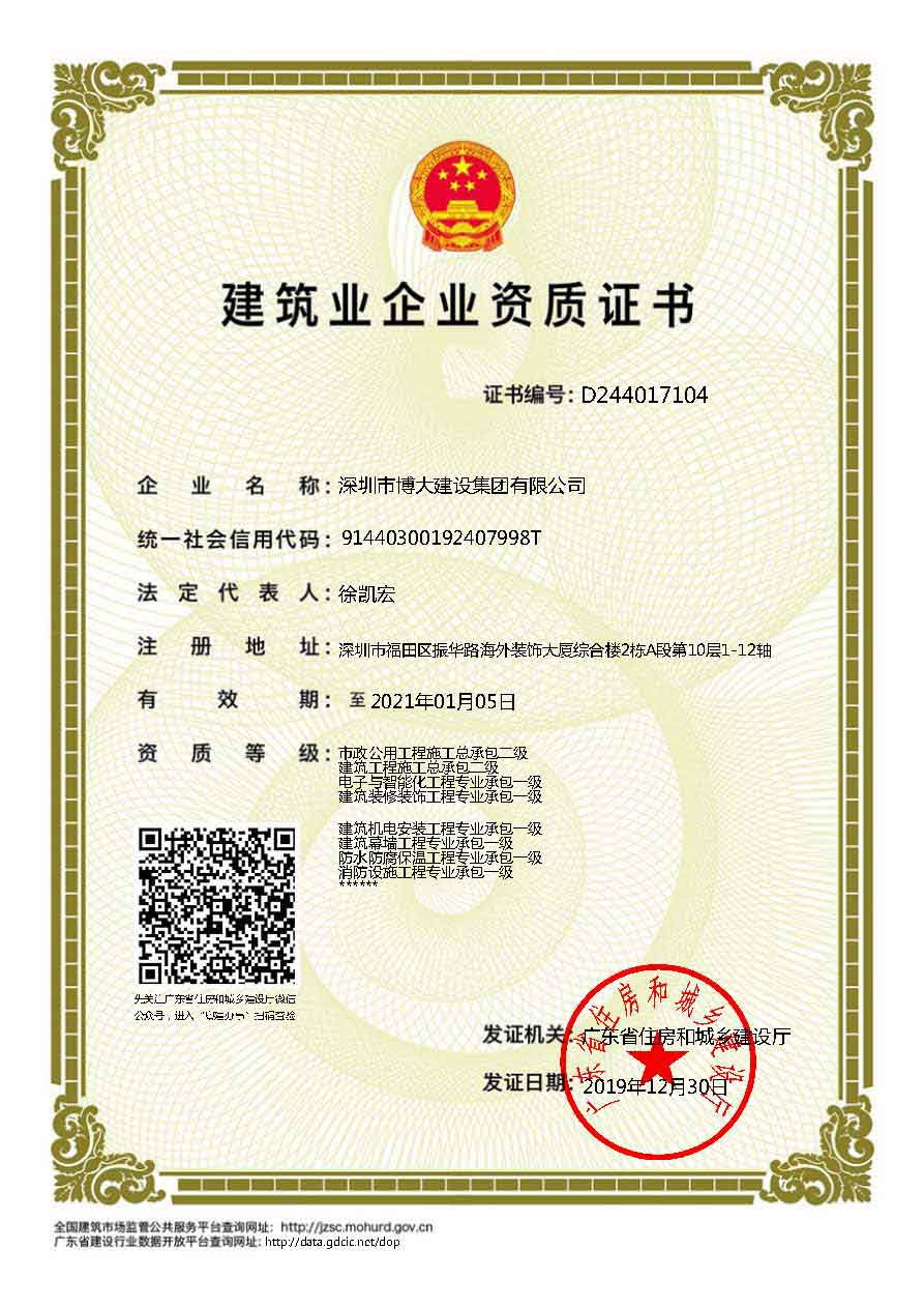 博大建設集團作為行業最具發展活力的領軍企業,近年來發展速度迅猛,2019年繼續保持穩步增長,業績過百億。在各級領導的關懷和全體家人的共同努力下,集團資質建設取得新的進展,榮獲6項建筑資質,具體如下: