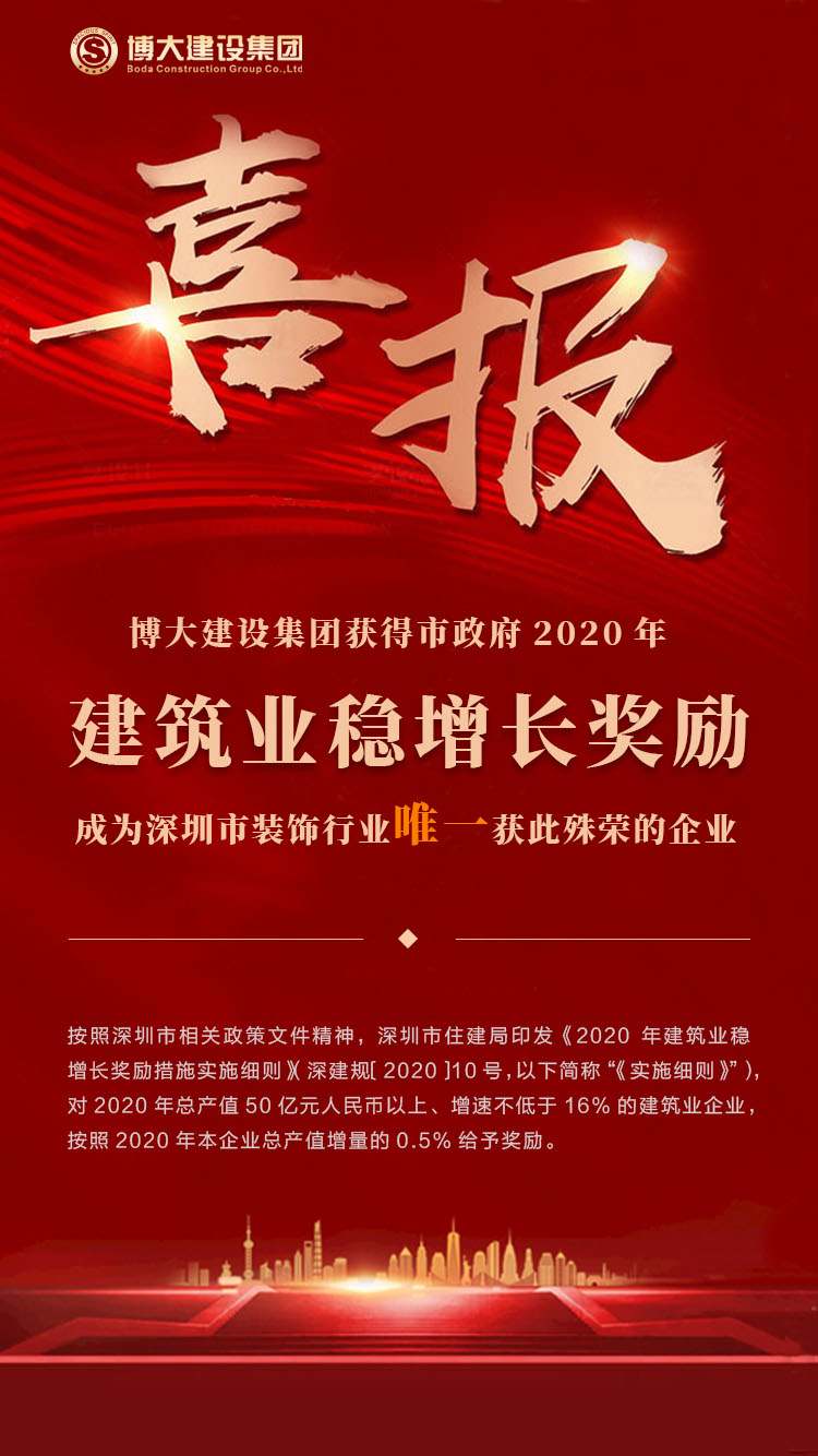 行業(yè)唯一 | 博大榮獲深圳市政府2020年建筑業(yè)穩(wěn)增長(zhǎng)獎(jiǎng)勵(lì)