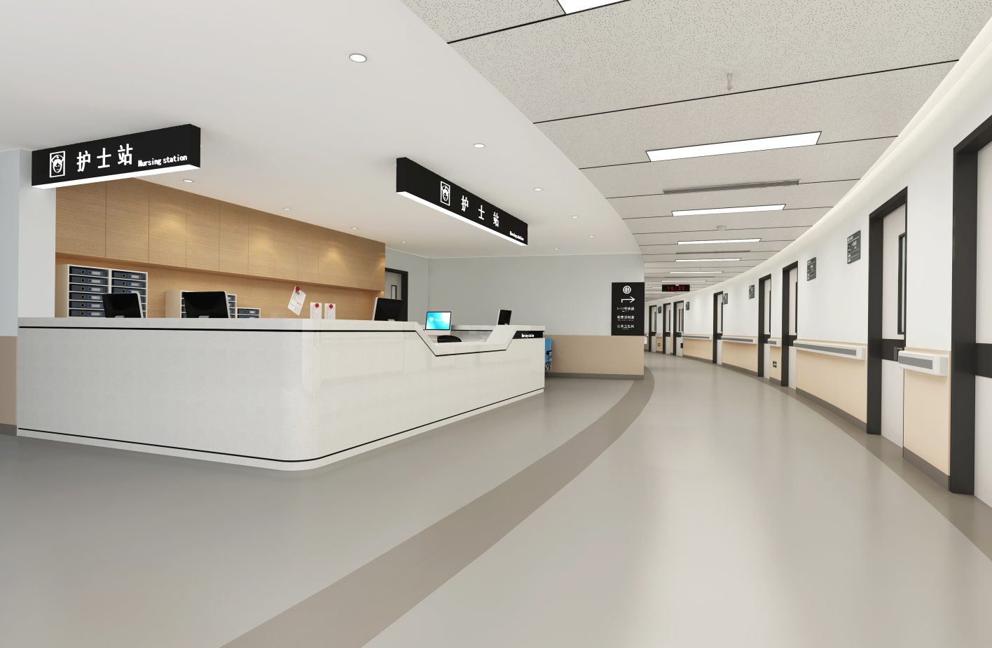 博大負責門急診區、檢驗區、影像區、透析區、病房區、手術室、ICU病房、計算機中心、會議室及辦公區在內的全部施工。