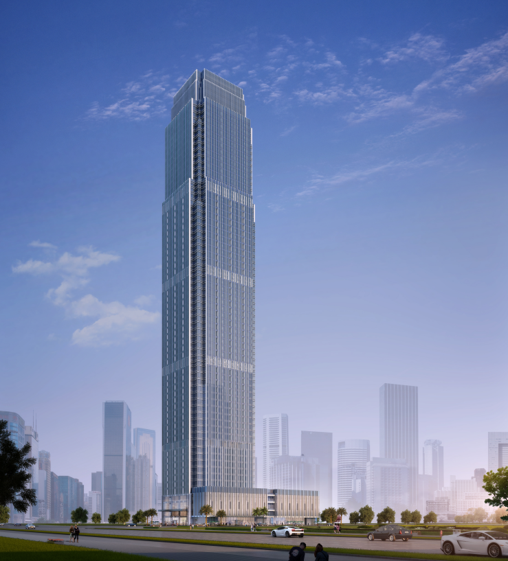 項目位于防城港市江山大道與金花茶大道交匯處,是一棟大型商業、辦公、酒店綜合體,總建筑面積超過17萬㎡,建成后將作為東盟經濟圈的金融中心,國際貨幣結算中心而存在,成為防城港市的新地標。
